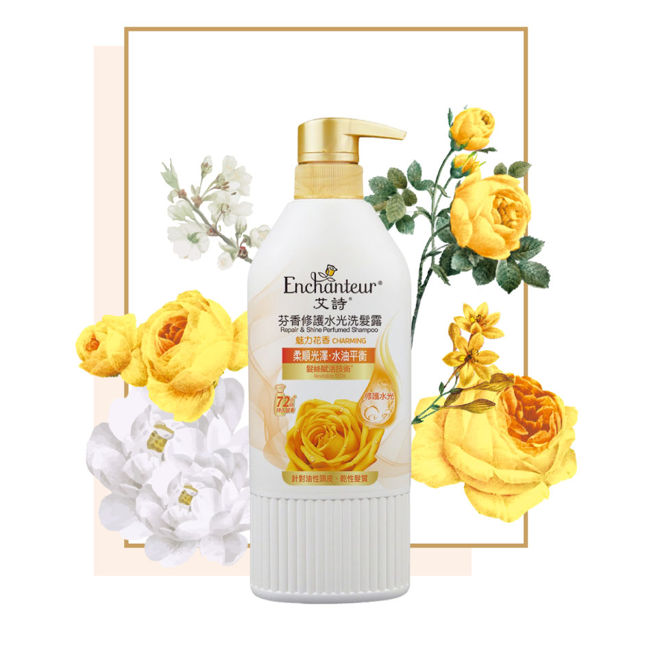 加入珍貴玫瑰精華及獨創芬香附吸因子,可將香氣快速滲入秀髮、撫平毛躁。4D透明質酸及植物精華深入頭皮幫助鎖水,每刻散發動人浪漫香氣。